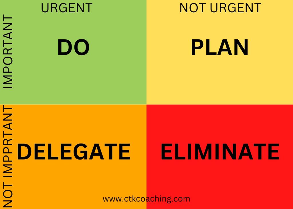 But there were some things that I had to get done, because they were time-sensitive and important. As I felt my chest tighten, my mood darken, and my thoughts starting to spiral, I turned to a tool I use with clients who are struggling to prioritize tasks when under pressure, a framework based on something called “The Eisenhower Matrix.”
